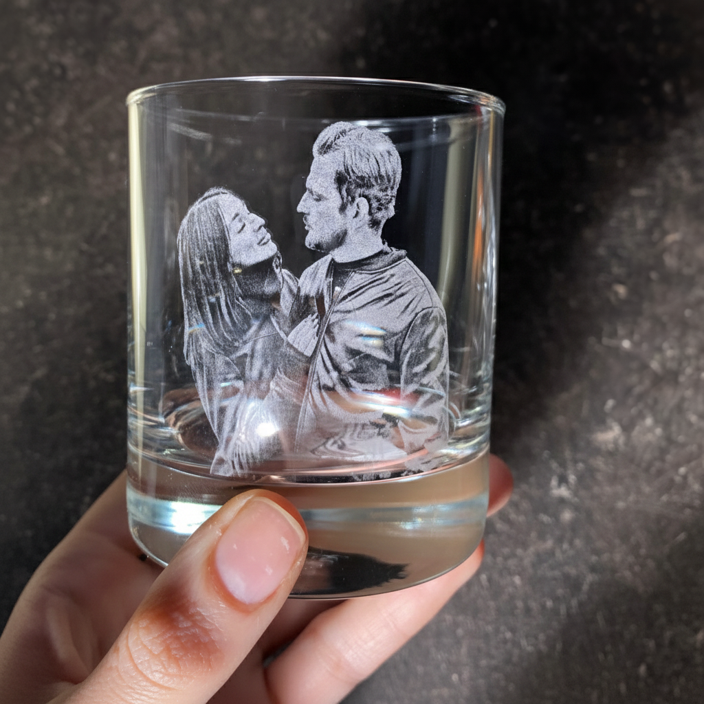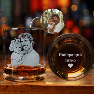 Склянка для віскі з фотогравіюванням та текстовим побажанням на дні склянки